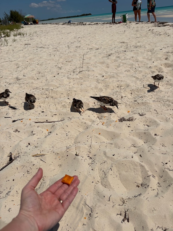 The sand was so fine it was soft. It really popped with the turquoise glowing in the background. I was feeding the sand piper birds. They were fun to watch.