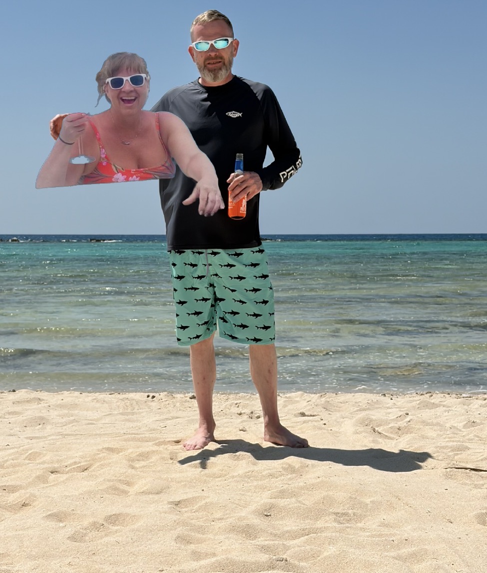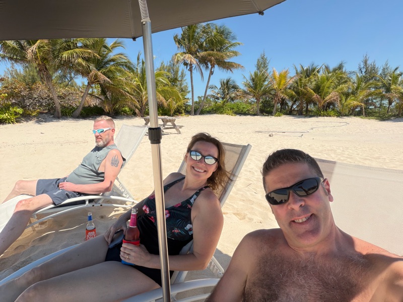 Andy and I are far more pale. We have to be far more diligent limiting the sun exposure. Thankfully we had the umbrella to shield us from the burning rays of the sun. We are doing our best not to sizzle in the hot Bahama sun.