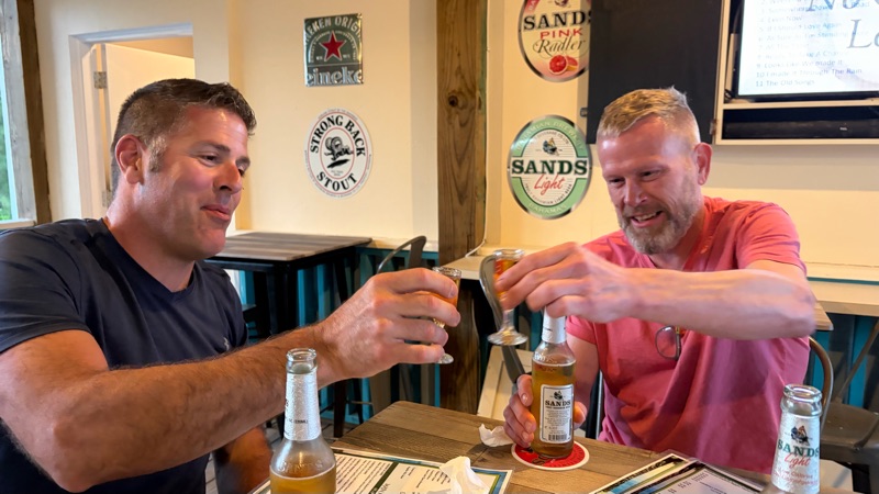 We went over for a drink. Andy and Paul did a shot. I declined. I don’t want to feel yucky traveling all day long.