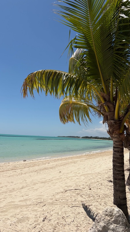 The beach was amazing. The best beach yet! Beautiful blue and sparkly water. We were able to walk out pretty far on a sandy path. I found two alive shells that I watched bury themselves in the sand. Nature’s tv!