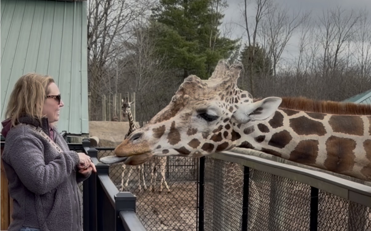 Then I got to cross something off my bucket list. We fed the giraffes. I don’t think I could have been more excited. Their tongues are purple. I read that because giraffes spend up to 12 hours a day eating, their dark tongues act like sunscreen to protect them. Science is cool!
