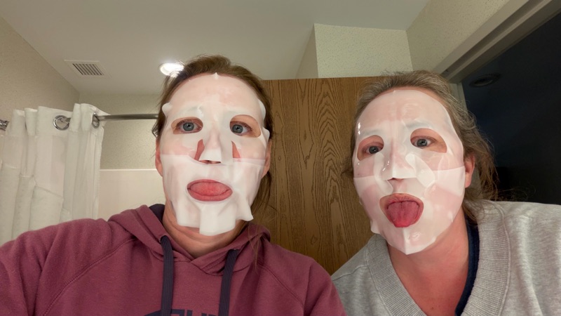 We spent the evening in pajama pants with the thermostat set at 63, because of perimenopause. We did a face mask and looked 25 afterward (at least that is what we told each other).