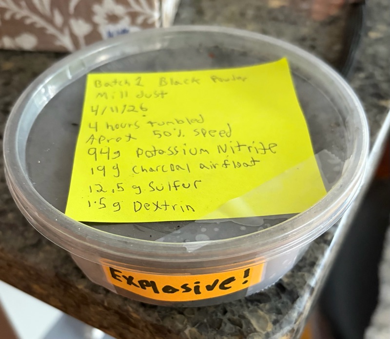 Ethan went to Cleveland and purchased fireworks. He is making some but wanted to purchase some as well. I find things like this on my counter and it makes me laugh.