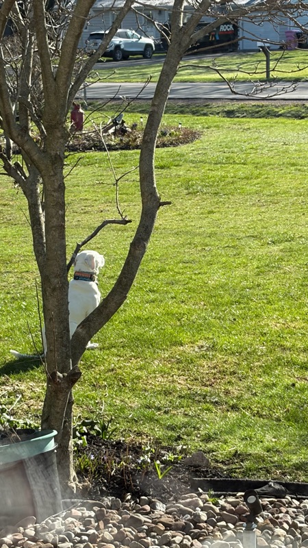 I can’t leave him outside alone for long in case a delivery person comes. I am afraid Moe will bite them. He is very serious about guarding!